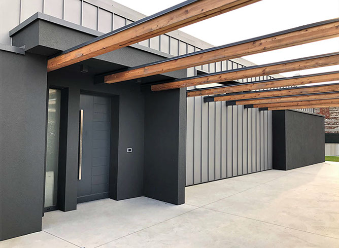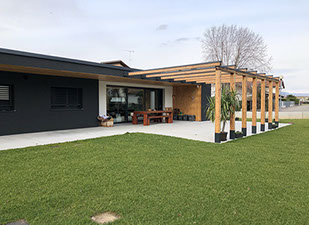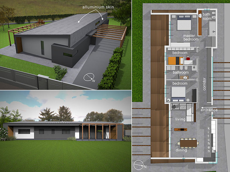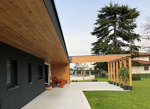 Il progetto prevede una costruzione con struttura a telaio, in legno naturale, ecologica ed energeticamente efficiente, per una coppia giovanile e dinamica.