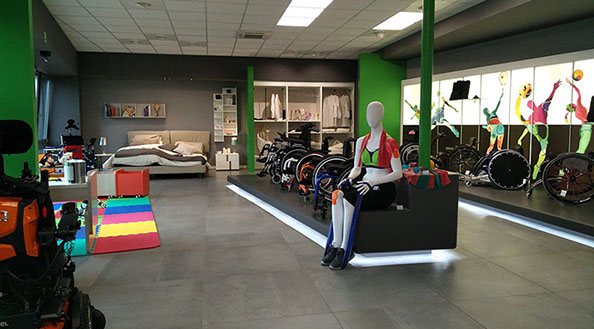 Il progetto della nuova sede di una nota ortopedica di Udine, diventa una sfida per reinterpretare i concetti di disabilità e fragilità. L’intento è quello di velare, anziché ostentare, inserendo gli ausili in un contesto fresco, moderno e quotidiano, che va dalla cucina, alla camera da letto, alle attrezzature sportive. L’ausilio viene così visto in una nuova dimensione, come un elemento utile per la conquista dell’autonomia, ma che allo stesso tempo si integra perfettamente con la vita di tutti i giorni. Entrando nella showroom, la sensazione è quella di trovarsi in uno spazio espositivo di arredamento o di articoli sportivi, dove la fragilità non viene nascosta, ma entra a far parte di un mondo unico e non di un mondo a parte. Oltre alla showroom, al piano terra numerose sono le sale prova, dove i terapisti, controllano misurano, personalizzano con stampanti 3D l’ausilio.