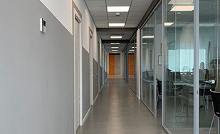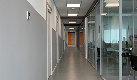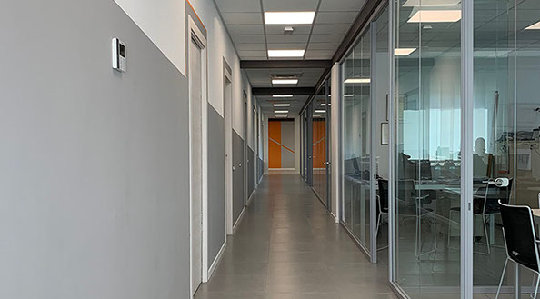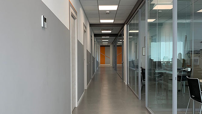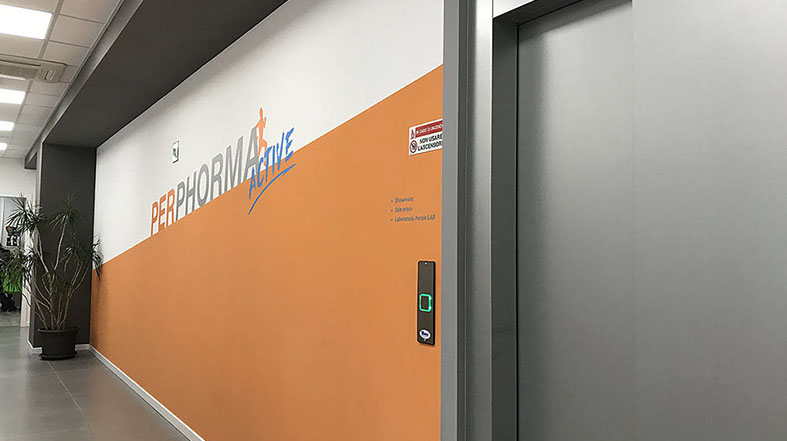In addition to the showroom, on the ground floor there are numerous test rooms, where therapists check, measure and personalize the aid using a 3D printers. On the first floor there are the rehab rooms, the baropodometry and the administrative offices. Colours playing a fundamental role, the lines break but continue along the walls, they merge and cross creating a dynamic space effect, even where we’re not used to see it.