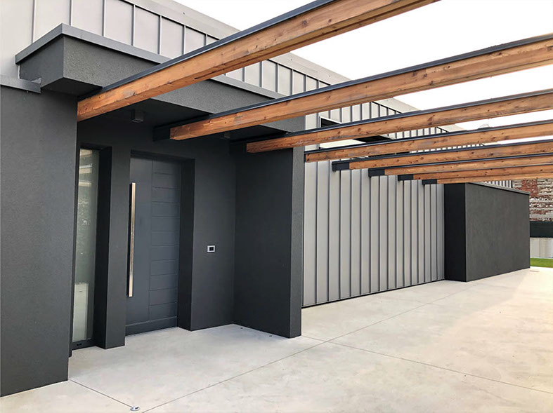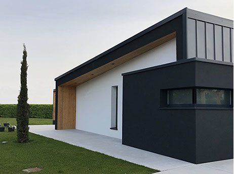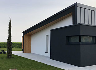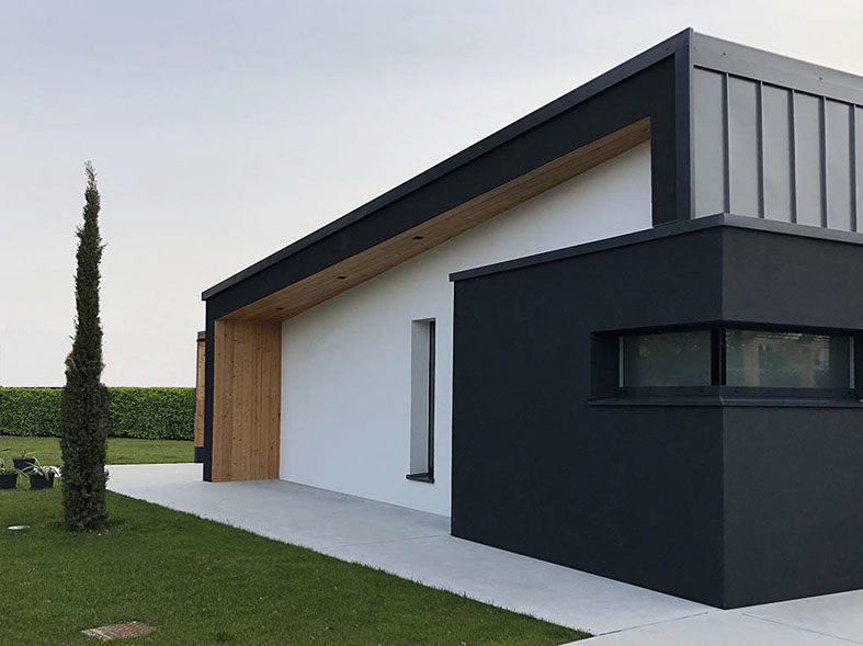 Il progetto prevede una costruzione con struttura a telaio, in legno naturale, ecologica ed energeticamente efficiente, per una coppia giovanile e dinamica.