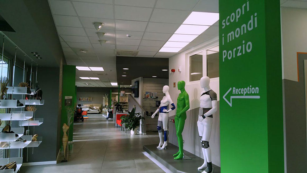 Il progetto della nuova sede di una nota ortopedica di Udine, diventa una sfida per reinterpretare i concetti di disabilità e fragilità. L’intento è quello di velare, anziché ostentare, inserendo gli ausili in un contesto fresco, moderno e quotidiano, che va dalla cucina, alla camera da letto, alle attrezzature sportive. L’ausilio viene così visto in una nuova dimensione, come un elemento utile per la conquista dell’autonomia, ma che allo stesso tempo si integra perfettamente con la vita di tutti i giorni. Entrando nella showroom, la sensazione è quella di trovarsi in uno spazio espositivo di arredamento o di articoli sportivi, dove la fragilità non viene nascosta, ma entra a far parte di un mondo unico e non di un mondo a parte. Oltre alla showroom, al piano terra numerose sono le sale prova, dove i terapisti, controllano misurano, personalizzano con stampanti 3D l’ausilio.