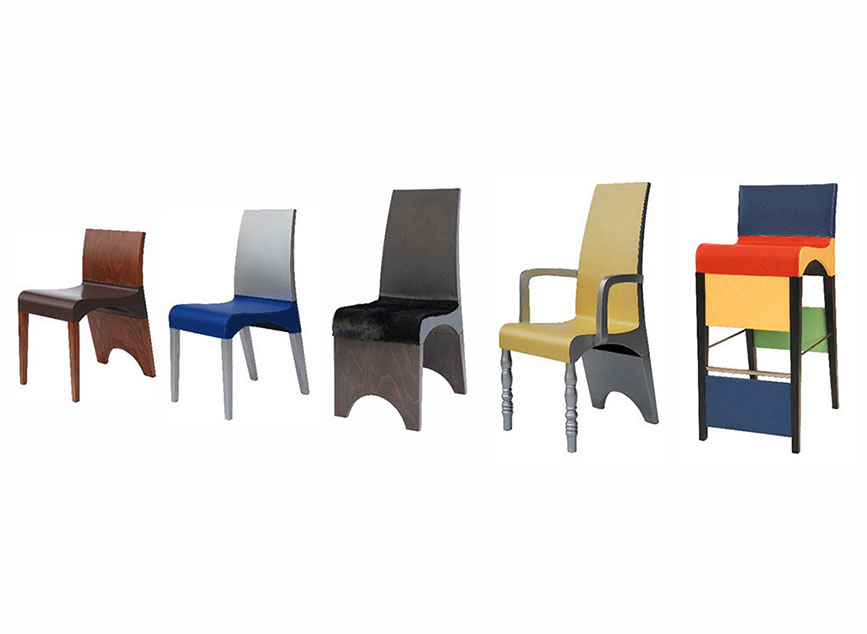 Lo studio ha come scopo la realizzazione di sedie che abbiano una decisa e diversa impostazione estetica pur utilizzando parti comuni.