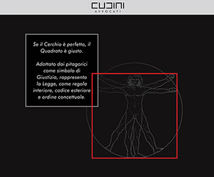 Il quadrato, figura geometrica adottata dai Pitagorici quale simbolo di Giustizia in rappresentanza della Legge, come regola interiore e ordine concettuale, diventa la matrice, l’impronta che genera il logo dello studio di avvocatura Cudini Associati. Il video introduttivo al sito rappresenta quanto ora descritto.
