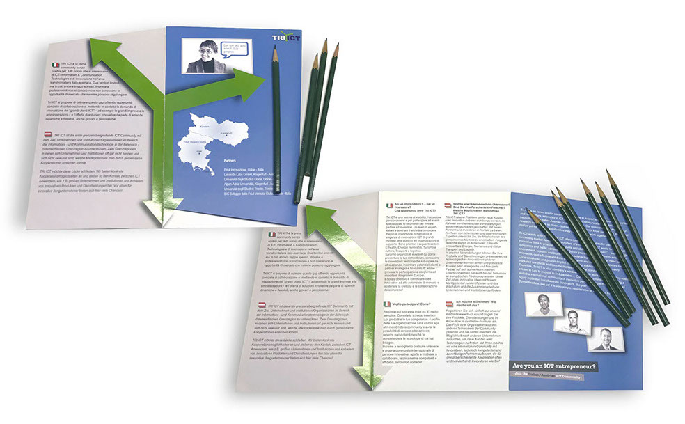 Il progetto Tri-ICT nasce con l'obiettivo di supportare la cooperazione tra imprenditori, aziende e ricercatori interessati all'ICT e l'innovazione nelle tecnologie della comunicazione nell’area di confine FVG-Carinzia. Tri-ICT si propone di aiutare le piccole aziende innovative (fornitori di soluzioni tecnologiche) a proporre i propri prodotti e competenze ai “big ICT users” – come grandi aziende e pubbliche amministrazioni. I principali segmenti di mercato su cui il progetto insiste sono e-health, energia e ambiente, logistica e turismo.